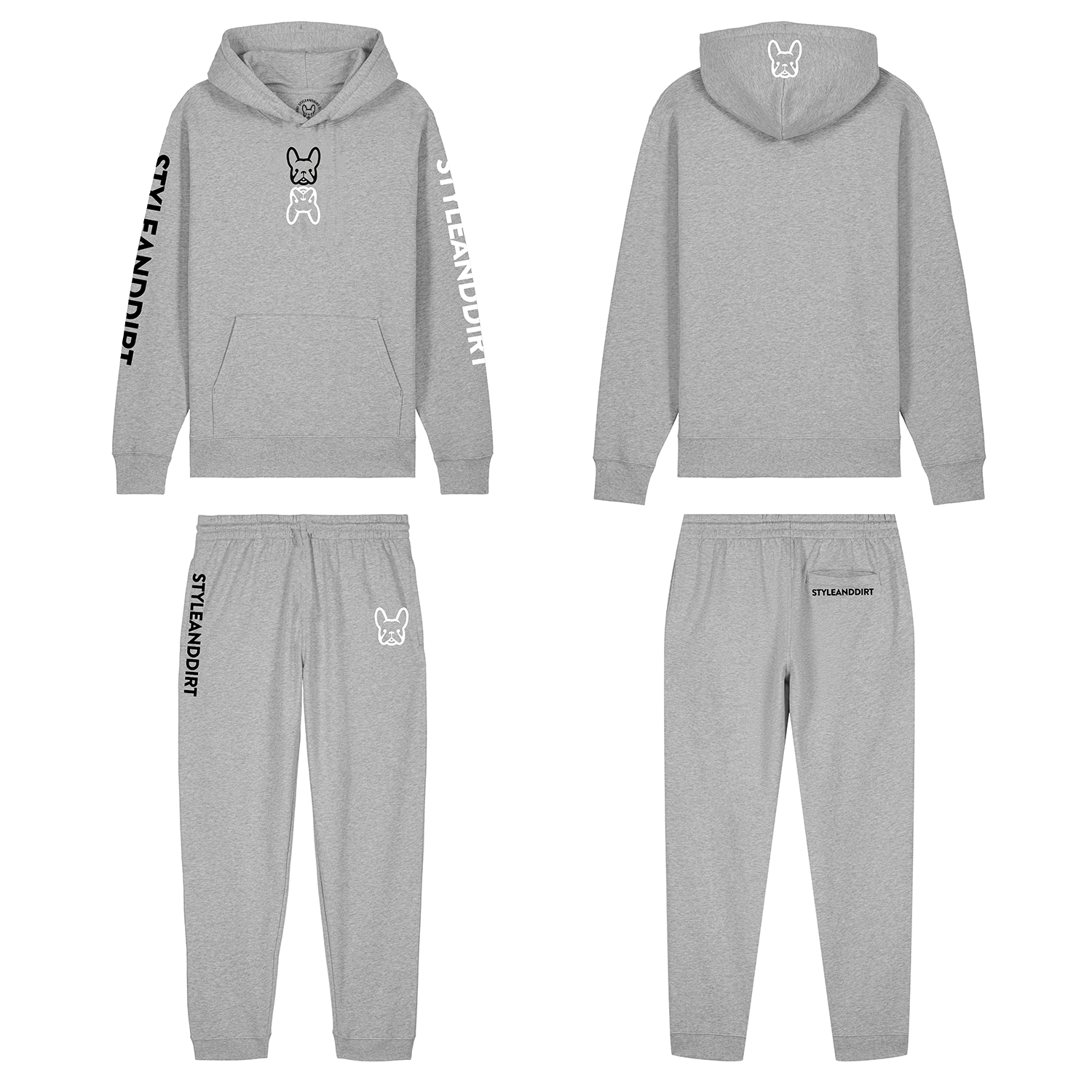 A StyleAndDirt 100% pamut tréning ruha unisex fazonú szett, amely felsőből és nadrágból áll, tiszta pamut anyaghasználattal. A 280 g/m² súly kellemes tartást és komfortos viseletet biztosít otthon, városban vagy aktívabb napokon is.