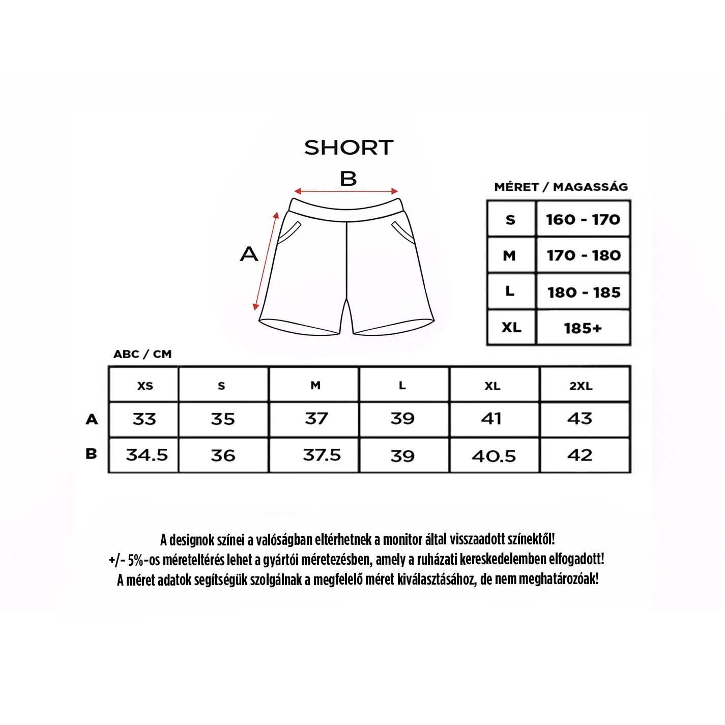 A méretezésben ±5% eltérés előfordulhat, ami a textiliparban elfogadott.