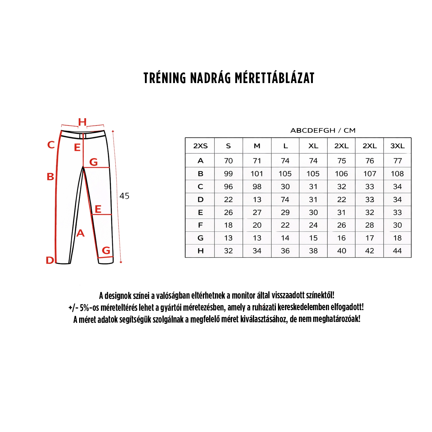 A méretezésben ±5% eltérés előfordulhat, ami a textiliparban elfogadott.