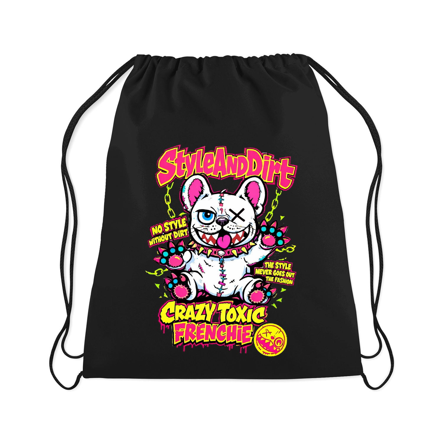 A StyleAndDirt Crazy Toxic Frenchie gym bag strapabíró poliészterből készül, könnyű és praktikus kialakítással. Ideális edzéshez, utazáshoz vagy mindennapi használatra.