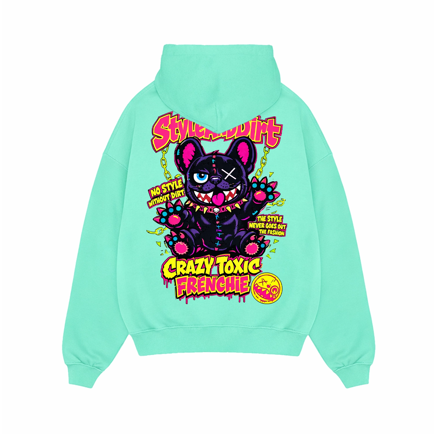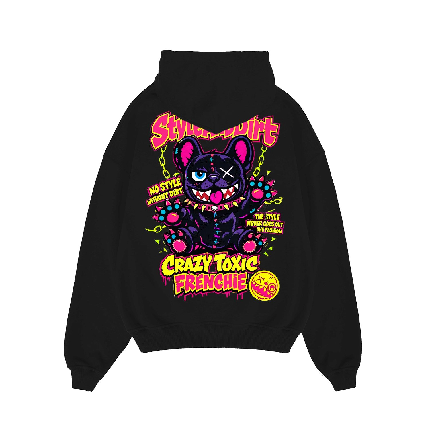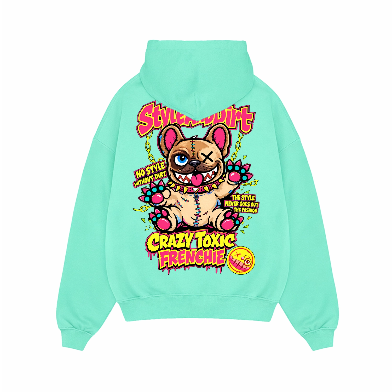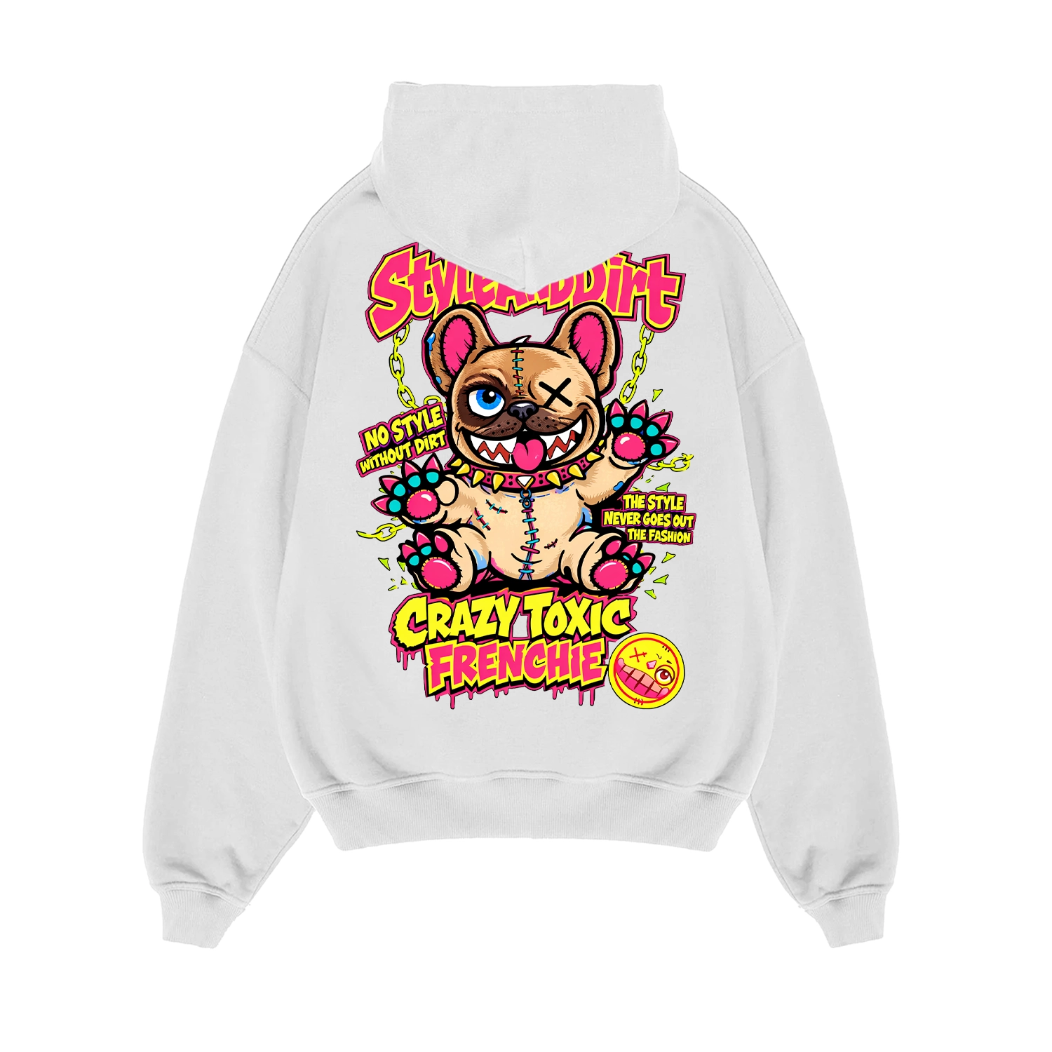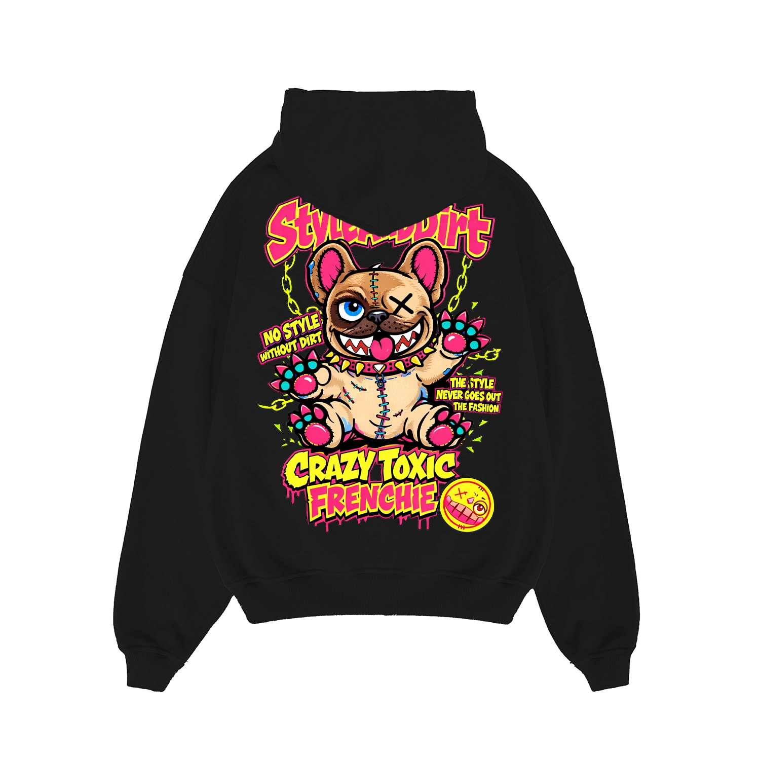 A Crazy Toxic Frenchie kollekció filozófiája egyszerű: karakter, humor és vagányság. A vigyorgó frenchie karakter a StyleAndDirt egyik legszabadabb oldalát jeleníti meg.